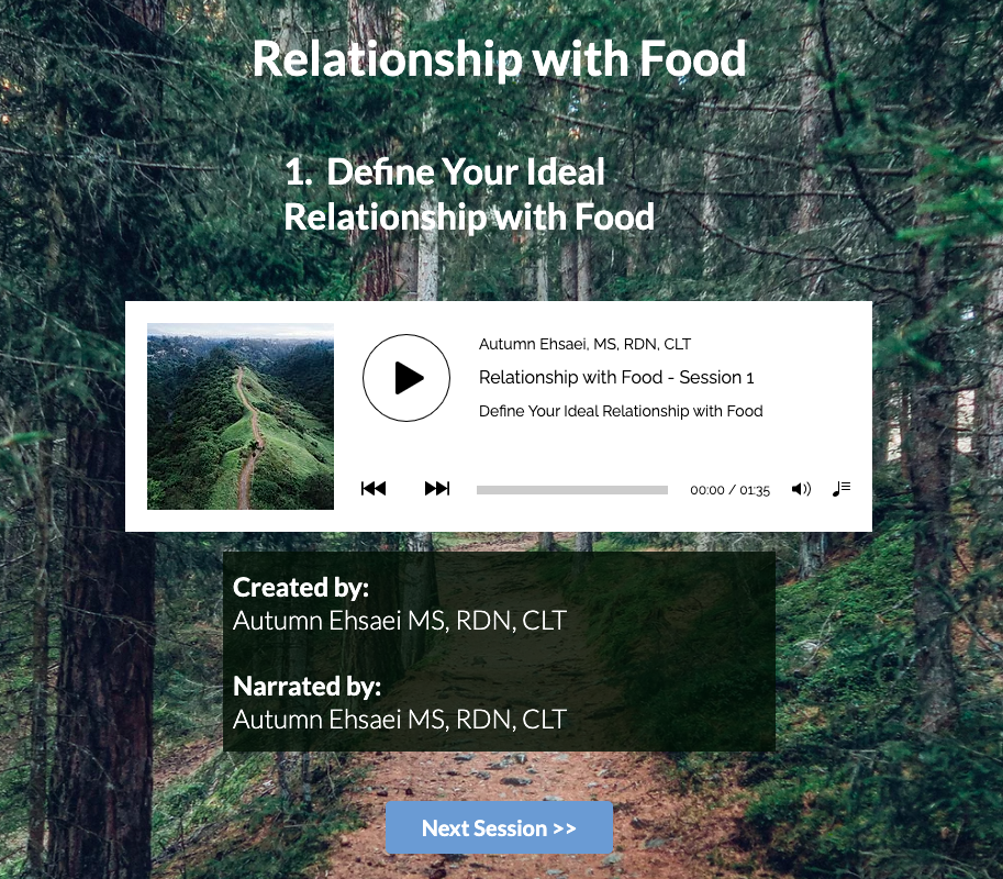 They're like little conversations you have with the Dietitian, each day, that are 1-2 minutes long, and they have you reflect on you - your Relationship with Food, Finding Your Why, Body Image, Judgment, Emotional Eating, Self-Talk...